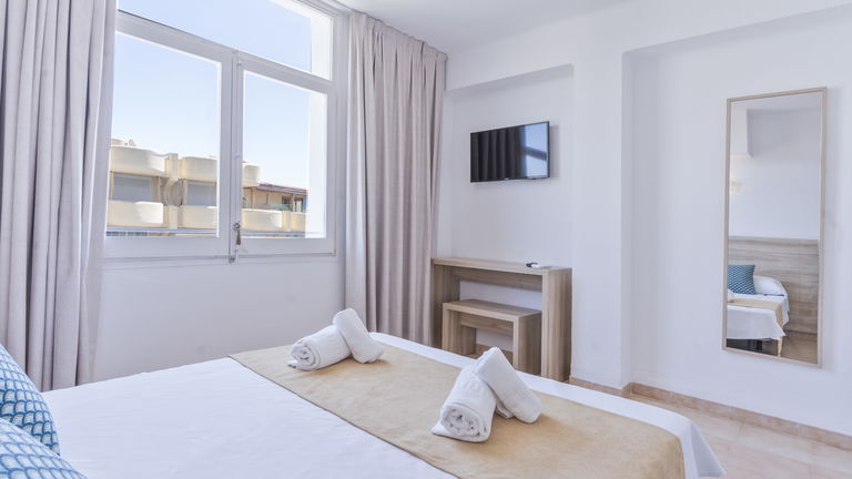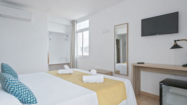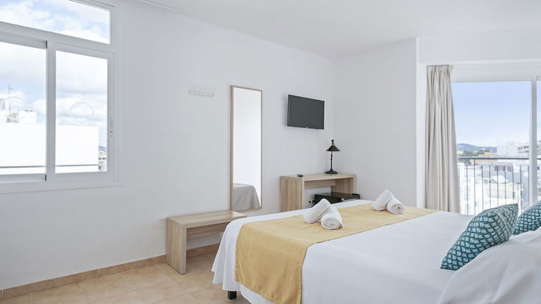 Enjoy a relaxing stay in a double bed with natural light and a balcony overlooking Ibiza. A spacious and cozy space, ideal for couples seeking comfort, privacy, and Mediterranean style in the heart of the island.